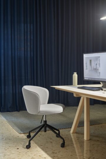 - Črne vrtljive noge: Združujejo funkcionalnost in minimalistično estetiko.