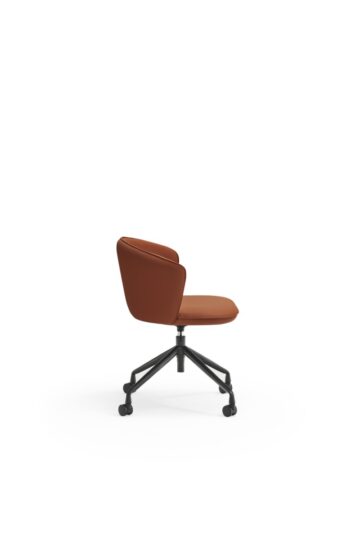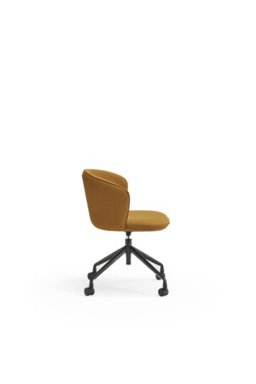 - Ergonomija in udobje: Oblazinjen naslon, ki se prilagaja naravni ukrivljenosti telesa, omogoča prosto gibanje in spreminjanje položaja, medtem ko širok sedež zagotavlja izjemno udobje.
