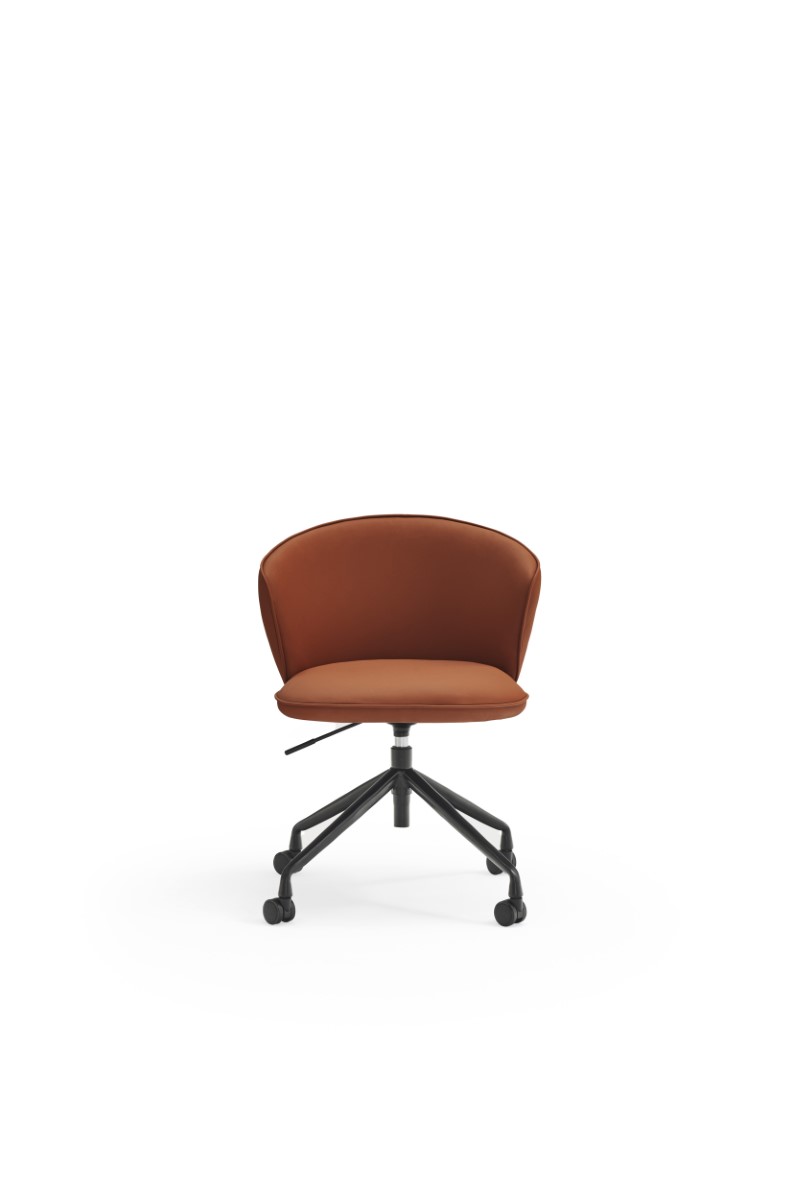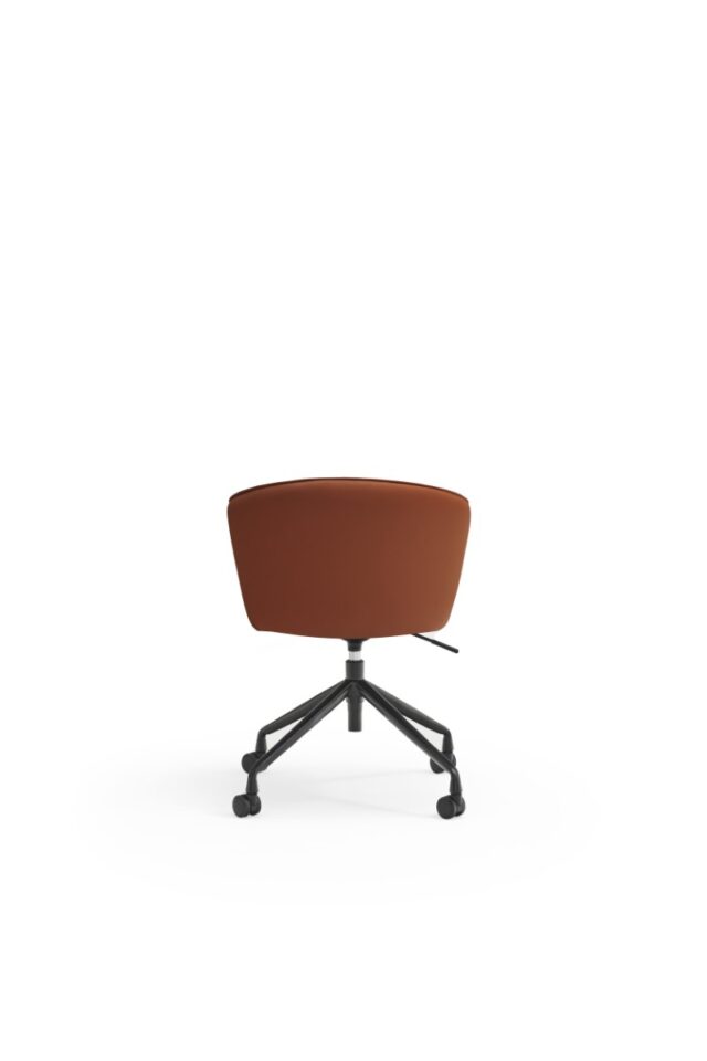 - Ergonomija in udobje: Oblazinjen naslon, ki se prilagaja naravni ukrivljenosti telesa, omogoča prosto gibanje in spreminjanje položaja, medtem ko širok sedež zagotavlja izjemno udobje.