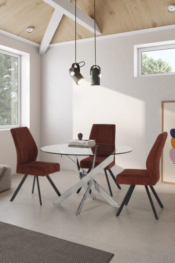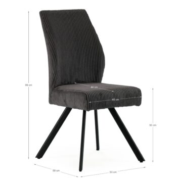 Komplet dveh jedilnih stolov ANIBAL (koda izdelka: 17883) je oblazinjen z rebrastim žametom in namenjen uporabi v jedilnici ter ponuja udobno sedenje. Vzdrževanje stola z vlažno krpo ali gobo omogoča praktično čiščenje. Stoli ANIBAL so primerni za različne jedilnice in se lahko dobro kombinirajo z različnimi slogi pohištva.