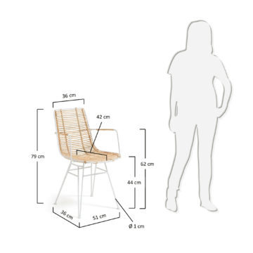 Jedilniški stol Ashanti je naravnega videza, primeren za moderne in klasične jedilnice. Sedišče in naslon sta izdelana iz ratana, nogice pa so kovinske, lakirane v barvi. Dobavljiv je v črni in beli barvi ogrodja.
