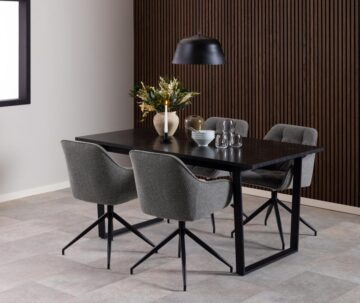 Podnožje stola je jekleno in barvano v mat črno barvo.