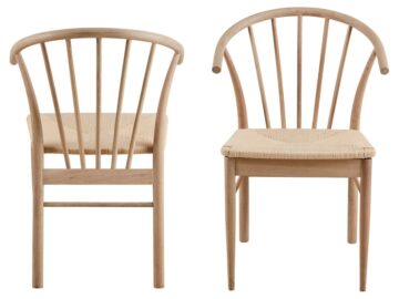 Jedilniški stol Cass v skandinavskem slogu je izdelan iz hrastoveha lesa z belim pigmentiranim oljnim zaključkom.  Ukrivljeno naslonjalo z navpičnimi letvicami ne le podpira vaš hrbet, temveč daje stolu tudi zanimiv element, medtem ko močno, široko pleteno sedalo naredi stol prijeten in udoben.