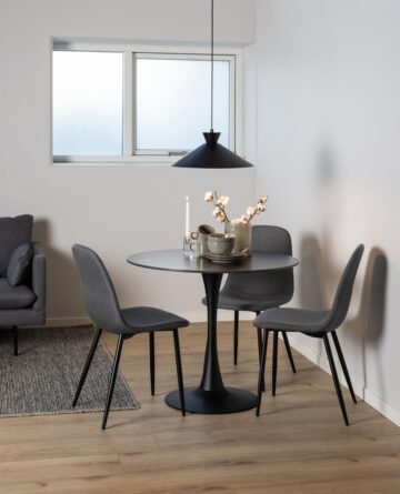 Minimalistično oblikovan stol Celia z izrazito nordijsko estetiko se bo podal skoraj k vsaki jedilnici. Sedalo stola je oblazinjeno in preoblečeno v trpežno tkanino. Podnožje stola je jekleno in preoblečeno v videz hrasta.