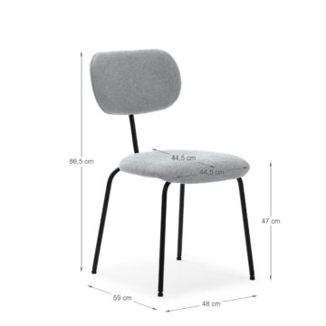 Jedilniški stol DASH je oblikovan za vsakodnevno uporabo, saj združuje preprost, a eleganten dizajn in trpežno konstrukcijo. Oblazinjen sedež omogoča udobno sedenje, kovinske noge pa zagotavljajo stabilnost in vzdržljivost. Stol DASH je odlična izbira za jedilnico, kuhinjo ali dnevni prostor, zaradi svoje vzdržljivosti pa je primeren tudi za gostinske lokale in pisarne.