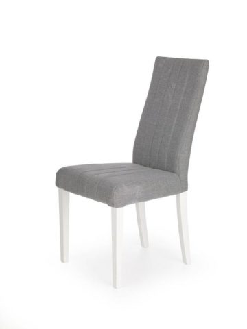 - Podnožje stola bele barve s sivo tkanino