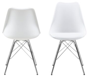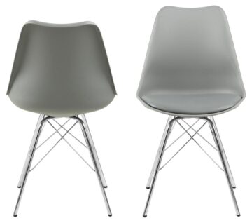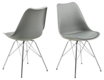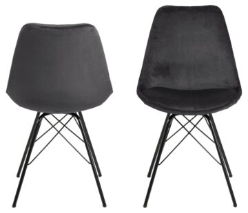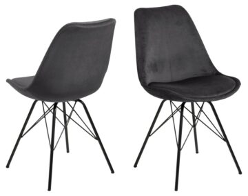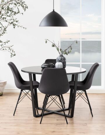 Pokažite svoj smisel za stil z brezčasnim jedilnim stolom Erik. Sedež je ergonomsko oblikovan tako, da se udobno prilega vaši naravni ukrivljenosti hrbta in vam pomaga ohranjati dobro držo, blazina pa zagotavlja mehko sedenje. Sedež podpira črno prašno lakirano kovinsko podnožje, ki dopolnjuje sodoben videz.
