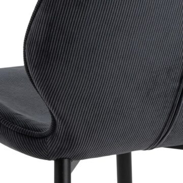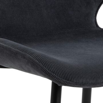 Oblazinjeno sedišče prekriva mehka siva tkanina, ki je enostavna za vzdrževanje. Jekleno elegantno podnožje pa je barvano v mat črno barvo.