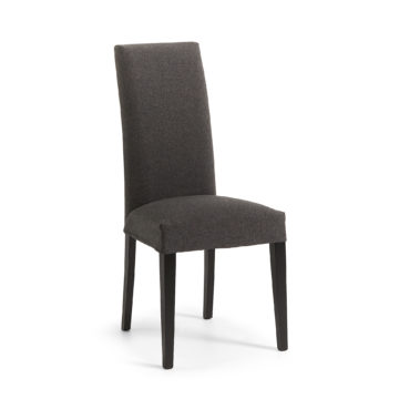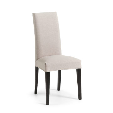 Jedilniški stol Freia je primeren je za moderne in klasične jedilnice. Nogice so izdelane iz kvalitetnega bukovega lesa pobarvanega v črno, sedišče in naslon pa sta oblečena v tkanino.