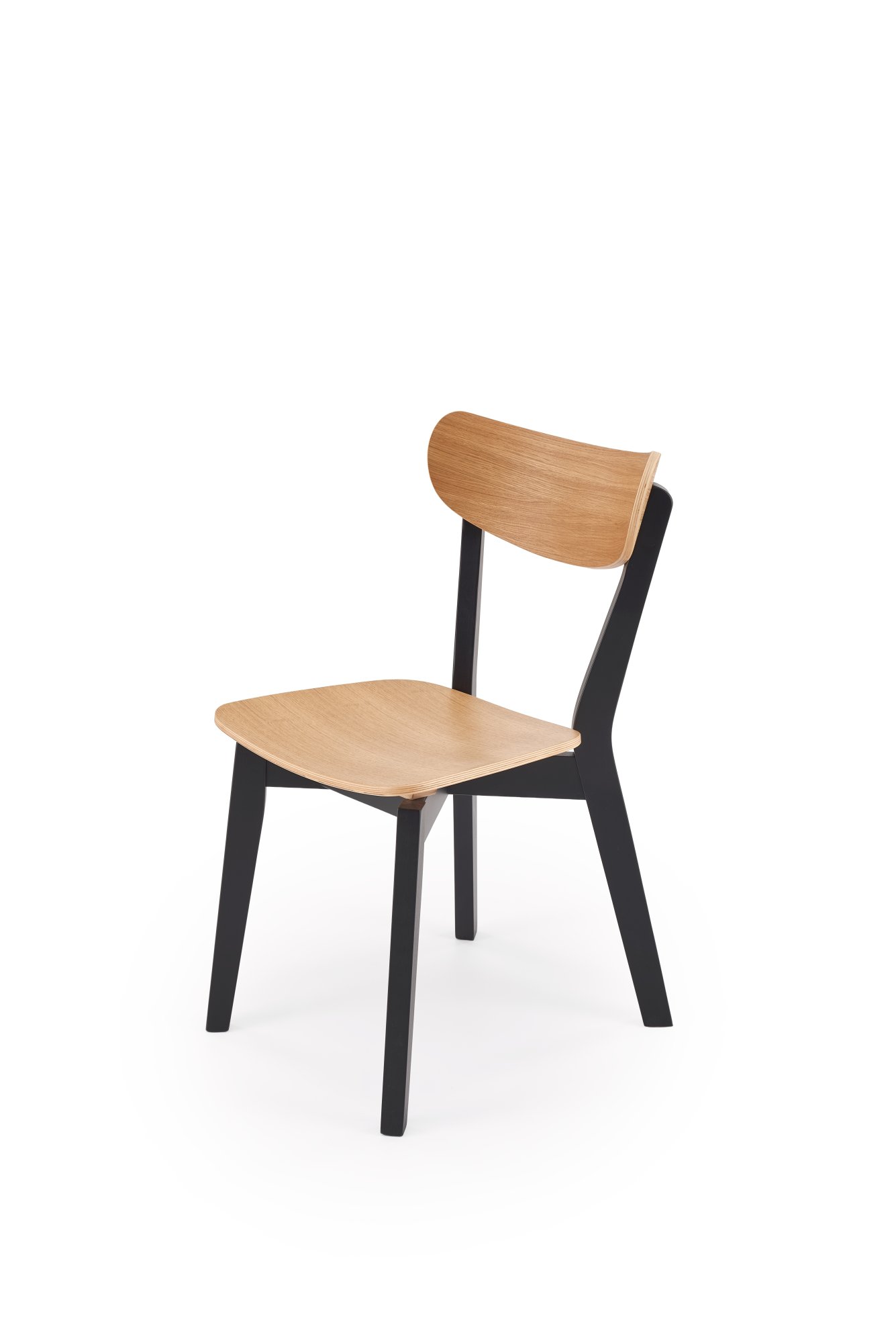 Jedilniški stol HAITI ima noge iz masivnega bukovega lesa barvanega v mat črno barvo ter sedalo in naslonjalo iz MDF-a, v naravni barvi.