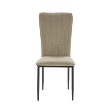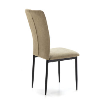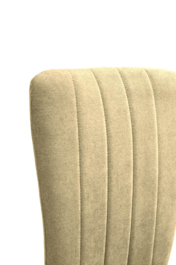 Udoben stol Holly ima sedišče in hrbtišče tapecirano v tkanino z dodatkom okrasnih šivov.