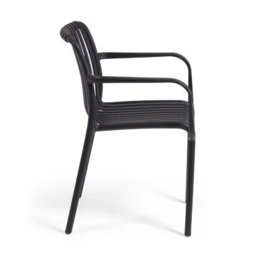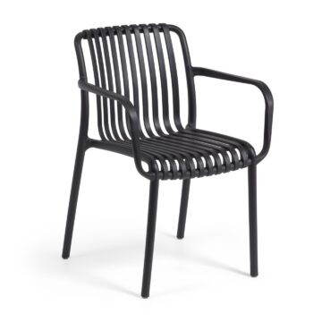 Jedilniški stol iz umetne mase Isabellini je izdelan iz 100% recikliranega polipropilena, kar ga naredi okolju prijazno izbiro za vaše notranje ali zunanje prostore. Njegova UV-odporna obdelava zagotavlja, da bo ostal estetsko privlačen in funkcionalen tudi pri daljši izpostavljenosti soncu.