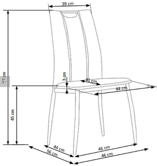 Dimenzije jedilniškega stola so: 44 x 41 x 97 cm.