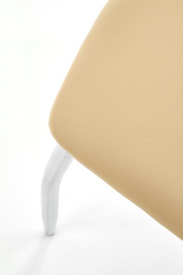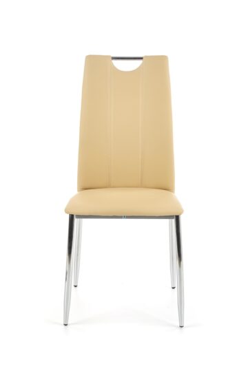 Jedilniški stol K187 ima podnožje iz kromiranega jekla.