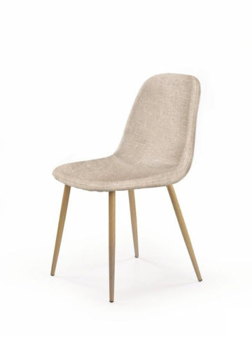 Jedilniški stol K220 je dobavljiv iz obarvanega jekla. Sedišče je oblazinjeno v tkanino krem barve.