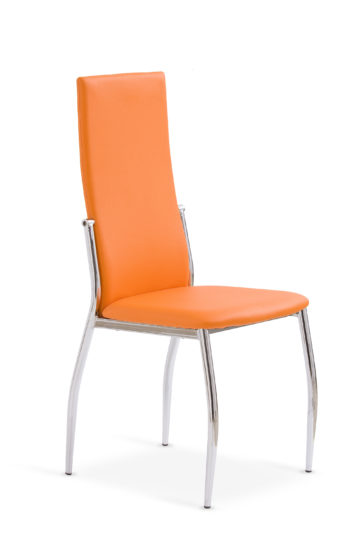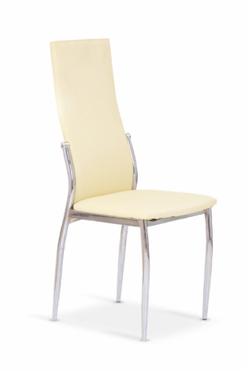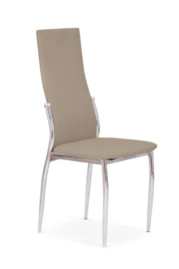 Jedilniški stol K3 je dobavljiv iz kromiranega jekla. Sedišče je oblazinjeno v ekološko usnje.
