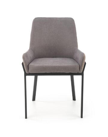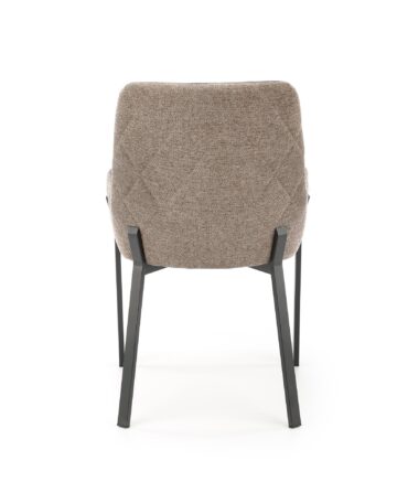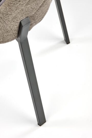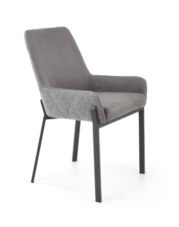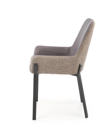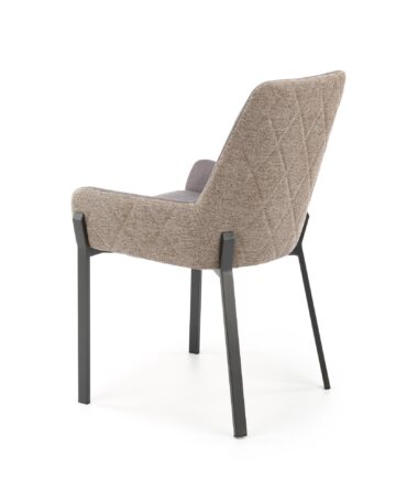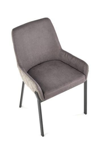 Jedilniški stol z oblazinjenim sediščem in naslonom za hrbet. Elegantnega in modernega videza, opaznega v nekonvencionalnem podnožju. Izdelan iz jekla in večbarvne tkanine. Izbirate lahko barvo hrbtnega strani.