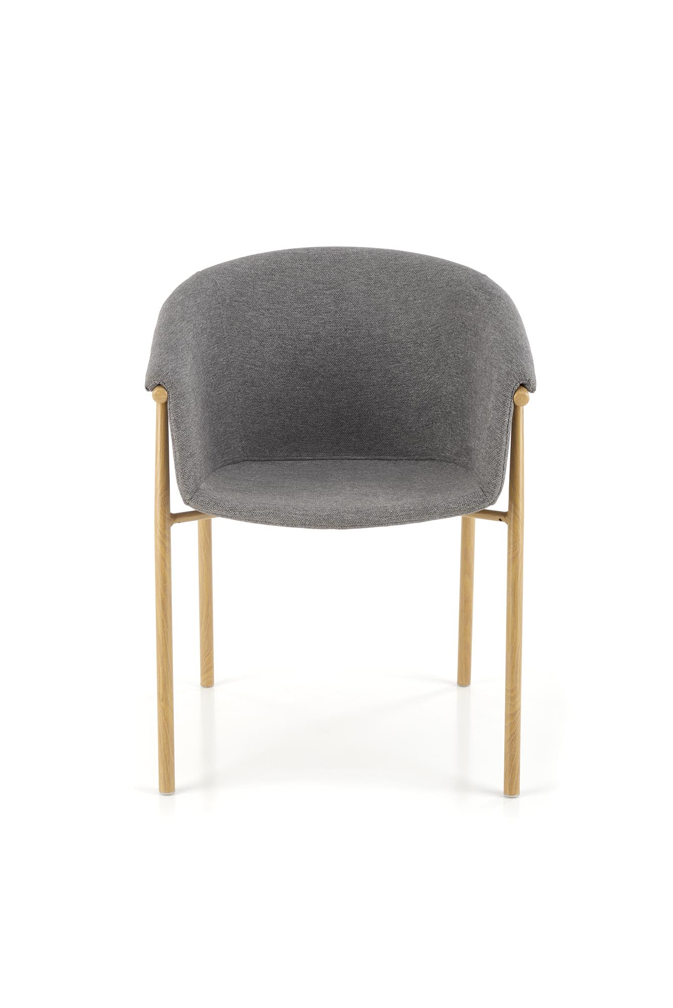 Zaradi zaobljenih linij in udobnega naslonjala je stol primeren tako za daljša druženja za mizo kot za vsakodnevno uporabo. Stabilne ravne noge s krožnim prerezom zagotavljajo trdnost, barvna kombinacija sivega oblazinjenja in hrast konstrukcije pa omogoča enostavno vključitev v moderne, minimalistične ali elegantno zasnovane interierje.