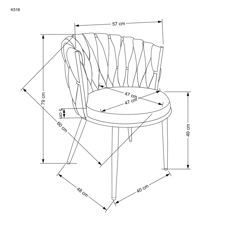 Stol K516 združuje stabilno kovinsko konstrukcijo in prijetno tekstilno oblazinjenje, kar zagotavlja udobje pri vsakodnevni uporabi ter sodoben videz prostora.