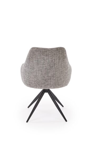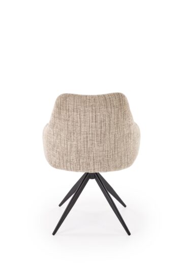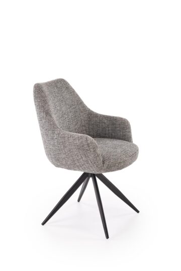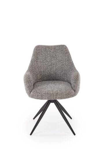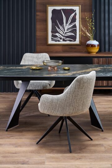 Jedilniški stol K564 z vrtljivim sedežem (360°) so oblazinjeni v mehko bež ali sivo tkanino in imajo črni kovinski okvir. Njihova široka oblika, ergonomsko oblikovan naslon in kakovostna tkanina zagotavljajo udobno sedenje ob vsakem obroku. Z minimalističnim dizajnom se odlično dopolnjujejo z razkošnim videzom mize Armani.