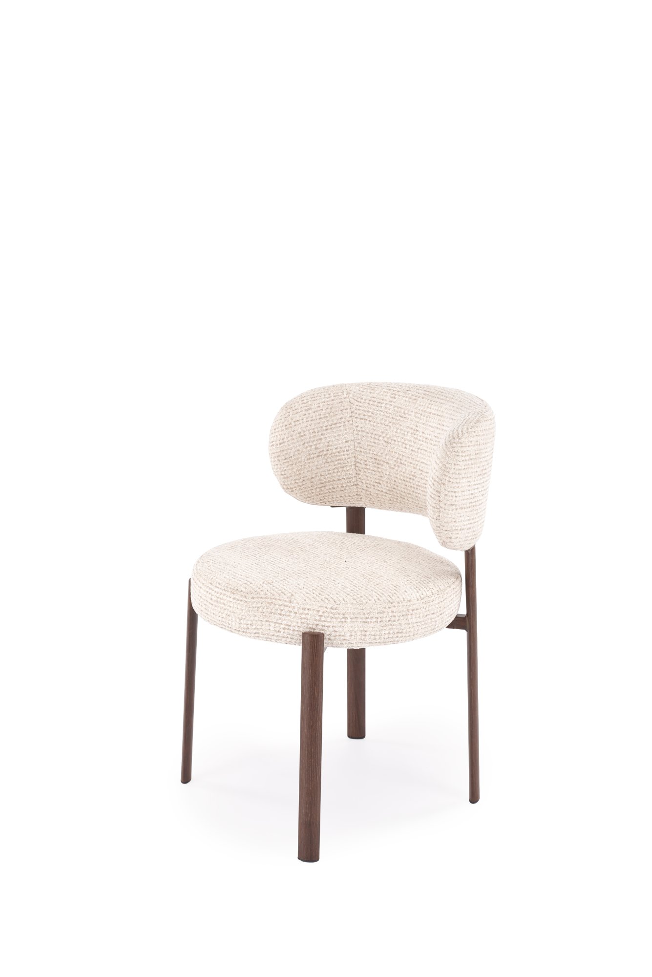Jedilniški stol K605 je sodoben stol, ki združuje udobje, elegantno obliko in stabilno kovinsko konstrukcijo. Oblazinjen je v tkanini SILENCIO v bež barvi (#06), ki prostoru doda topel in eleganten videz ter se lepo ujema z različnimi stili jedilnic ali kuhinj. Konstrukcija iz barvanega jekla v dekorju oreha zagotavlja stabilnost in sodoben kontrast mehko oblazinjenemu sedežu.