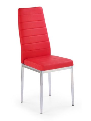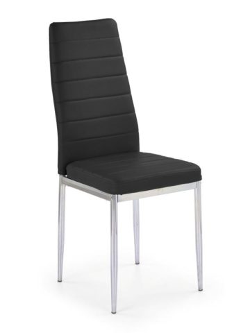Jedilniški stol K70C je dobavljiv iz kromiranega jekla. Sedišče je oblazinjeno v ekološko usnje.