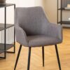 Brezčasni in elegantni jedilniški stol Lizzy z rokonasloni bo poskrbel za udobno sedenje. Stol je oblazinjen z vzdržljivo tkanino Basel z dvobarvnim učinkom kar zagotavlja lep strukturiran videz. Podnožje stola je iz jekla barvanega v mat črno barvo.