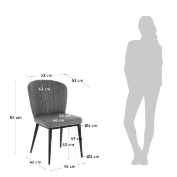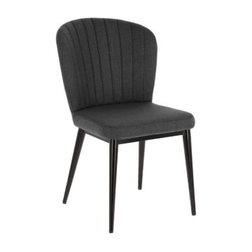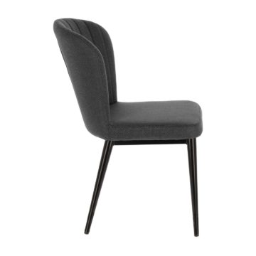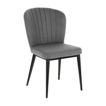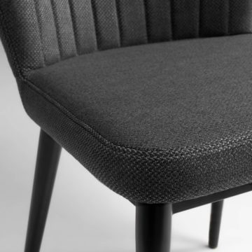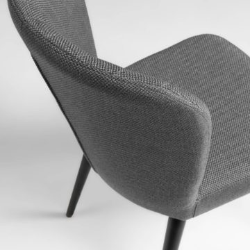 Madge je dizajniški jedilniški stol, rahlega klasicističnega videza. Naslon, oblikovan za popolno prilagajanje hrbtenici, in sedišče sta tapecirana in oblečena v kakovostno vodoodporno tkanino. Struktura je izdelana iz jekla in iverne plošče. Za popoln videz so nogice lakirane črno. Tkanina je na voljo v sivi in temno sivi barvi.