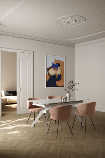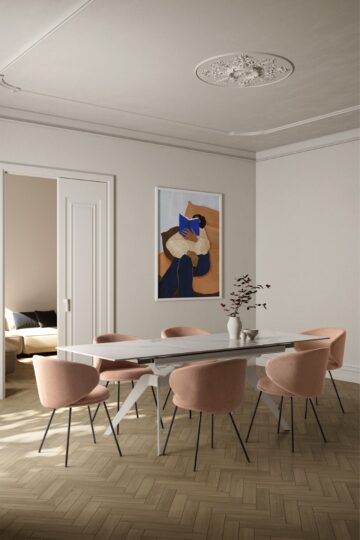 Jedilniški stol MALILA je oblazinjen v mehko tkanino, ki zagotavlja prijetno in udobno sedenje. Zaradi preprostega, a elegantnega dizajna se enostavno vključuje v različne stile notranje opreme, od modernih do klasičnih ambientov. Črne kovinske noge nudijo stabilnost in trpežnost, zaradi česar je stol primeren za dolgotrajno uporabo. Idealen je za jedilnice, kuhinje, dnevne sobe ali domače pisarne.