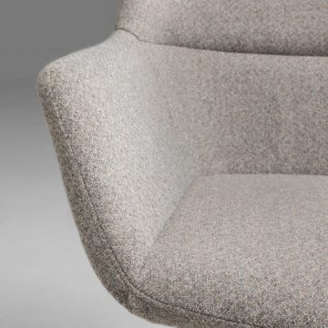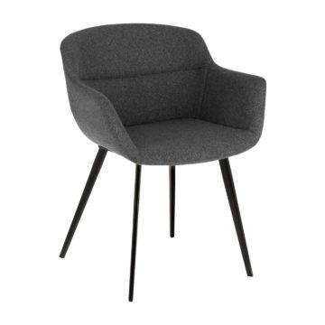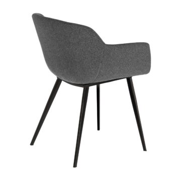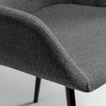 Nadya je udoben in sodoben jedilniški stol, dobavljiv v dveh odtenkih prilagodljive sive barve. Oblazinjeno sedišče z naslonom je oblečeno v vodoodporno tkanino. Struktura je izdelana iz jekla in iverne plošče. Za popoln videz so nogice lakirane črno.