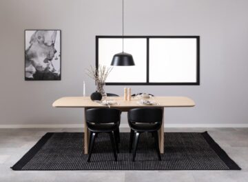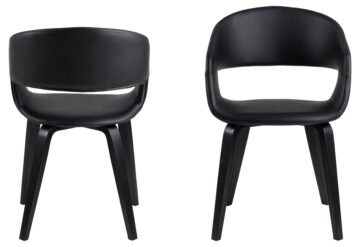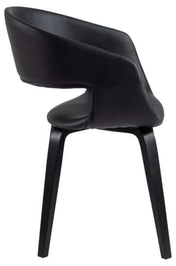 Jedilniški stol Nova je zasnovan v slogu sredine prejšnjega stoletja, združuje oblikovane lesene noge in gladek umetni usnje v elegantni črni barvi. Namenjen je dopolnjevanju tako tradicionalnih kot modernih jedilnic, stol z odprtim hrbtom brez napora prinaša sproščeno in prijetno vzdušje v vsak prostor.