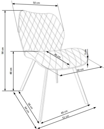 Posodobite svojo jedilnico z modernimi jedilniškimi stoli K360, ki so oblazinjeni v strukturirano tkanino. Stol je sodobno oblikovan in ima čudovito karo prešitje z ergonomsko oblikovanim naslonom. Udobju zgornjega dela daje kontrast črvstih kovinskih nog kvadratnih oblik, ki so črne barve.