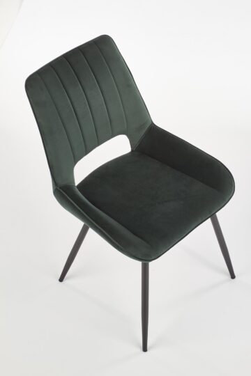 Siva barva je prava izbira za enostavno usklajevanje v notranjem dizajnu, z zeleno barvo pa lahko vnesemo prostoru poudarek. Ta edinstveni stol z visokim naslonom na tankih, poševnih nogah, ki so črne barve se prilega k kateri koli temi notranjega opremljanja.