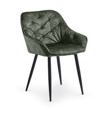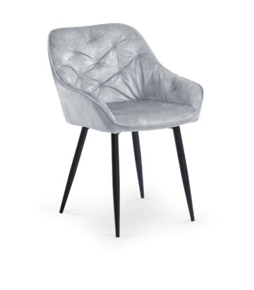Dodajte drzen in lep pridih svoji jedilnici s temi elegantnimi jedilnimi stoli. Bogato oblazinjenje s klasičnim prešitjem doda stolu moderno silhueto ter udobnost. Nogice so kovinske, prašno barvane, črne barve. Lahko izbirate med barvami oblazinjenja: