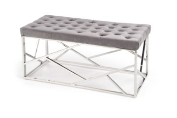 Noge klopi so iz kromiranega jekla v srebrni barvi, sedišče pa je oblečeno v žametno tkanino, ki je izredno prijetna na otip. Odlikuje se s kakovostno izdelavo in je odličen dodatek dnevni sobi ali predsobi.