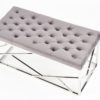 Noge klopi so iz kromiranega jekla v srebrni barvi, sedišče pa je oblečeno v žametno tkanino, ki je izredno prijetna na otip. Odlikuje se s kakovostno izdelavo in je odličen dodatek dnevni sobi ali predsobi.