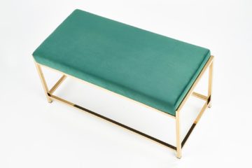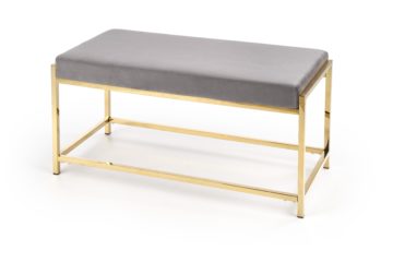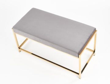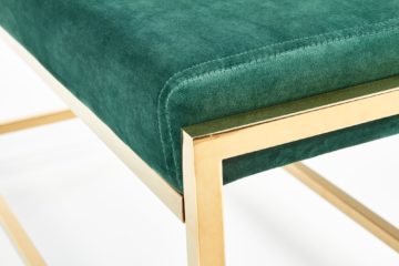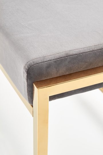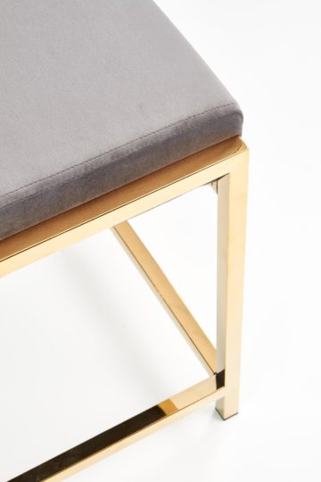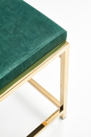 Podnožje klopi je iz kromiranega jekla v zlati barvi, sedišče pa je oblečeno v žametno tkanino, ki je izredno prijetna na otip. Odlikuje se s kakovostno izdelavo in se odlično poda v predsobo ali dnevno sobo – poskrbela bo za udoben počitek.