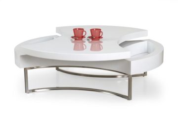 Klubska miza Aurea je dobavljiva s podnožjem iz kromiranega jekla. Plošča mize je iz lakiranega MDF mediapana bele barve.