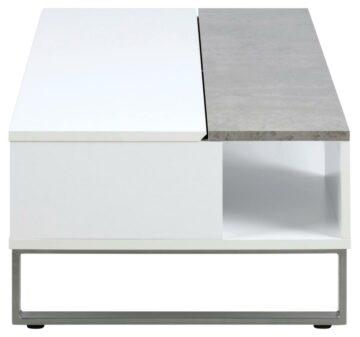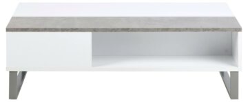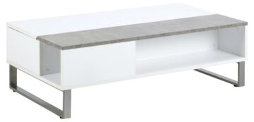 - s ploščo iz sivega melamina v kombinaciji z belim melaminom, kovinsko podnožje.