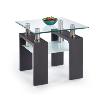 Steklena klubska mizica Diana H Kwadrat je narejena iz MDF mediapana. Plošča mize in polička je steklena.
