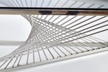 Steklena klubska mizica Infinity ima čudovito elegantno obliko. Plošča je pravokotne oblike in narejena iz zadimljenega stekla. Elegantno oblikovano podnožje je iz kromiranega jekla. Dimenzija