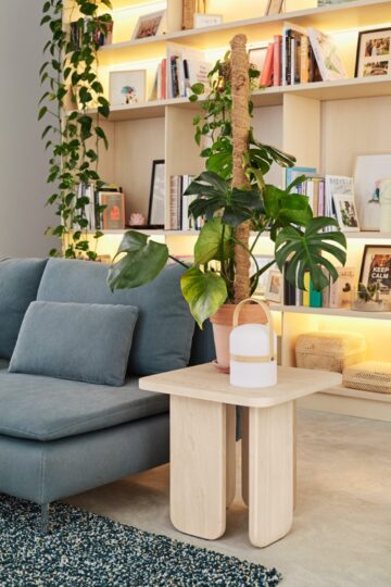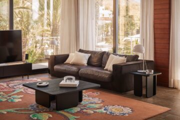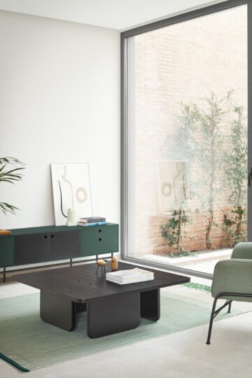 Klubska mizica ARQ združuje naravne materiale in elegantno oblikovanje, zaradi česar je popoln dodatek za sodobne dnevne prostore.