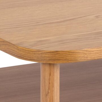 Mizica z lakirano hrastovo površino in gladkimi robovi dodaja elegantno noto vsakemu prostoru. Okrogle lakirane hrastove noge dopolnjujejo obliko in prispevajo k celovitemu videzu.