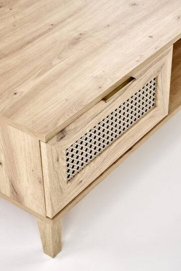 Klubska mizica Borneo v barvni kombinaciji artisan hrasta in črne v prostor vnese toplino naravnih tonov ter pridih modernega boho sloga. Njena pravokotna oblika in premišljena višina omogočata praktično uporabo v dnevni sobi, bodisi za odlaganje pijače, knjig ali dekorativnih dodatkov. Mizica je stabilna, preprosta za čiščenje in odlično dopolnjuje preostale elemente kolekcije Borneo.