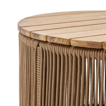 Oplemenitite svoj zunanji ali notranji prostor z mizico Dandara. Jeklena struktura in vrvica dodajata značaj vsem vrstam okolij in ustvarjata kontrast s trdno ploščo iz akacijevega lesa, ki prinaša naraven pridih.
