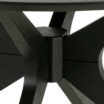 Okrogla klubska mizica Duncan je izdelana iz hrastovega lesa in zaščitena z hrastovim furnirjem. Klubska mizica je v celoti obarvana v črno barvo in za zaščito barve še lakirana.