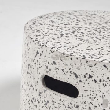 Klubska mizica Jenell prinaša urbani slog na vaš vrt ali teraso. Njena trpežna teraco struktura omogoča uporabo na prostem skozi vse leto, obenem pa s svojo elegantno belino dopolnjuje tako moderne kot klasične ambiente.