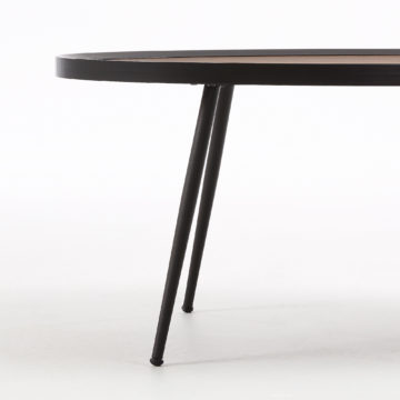 Klubska mizica Kamelia je sestavljena iz jeklene strukture in čudovite ovalne plošče, krašene s furnirjem lešnika. Njen temnejši slog in minimalističen videz bosta odlična izbira za številne prostore. Deloma je izdelana tudi iz MDF plošče. Konice nogic so zaščitene, da bi preprečile morebitne odrgnine na tleh.