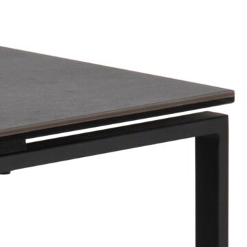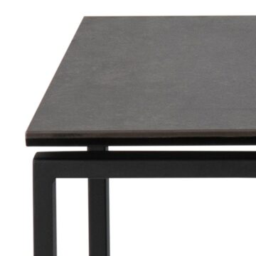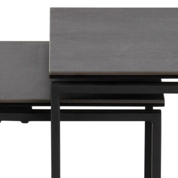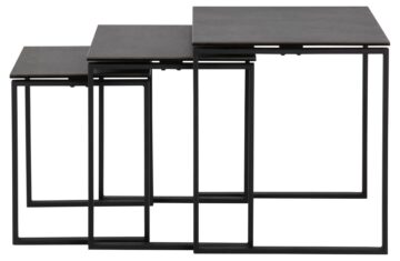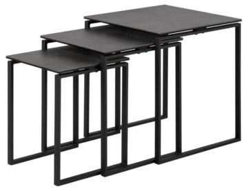 Katrine square nest of tables, top black Fairbanks rough ceramic, sledge base matt black rough powder coated steel, with set of 3 pcs, 50x50x55 cm