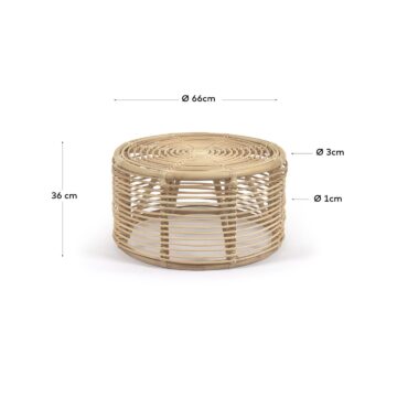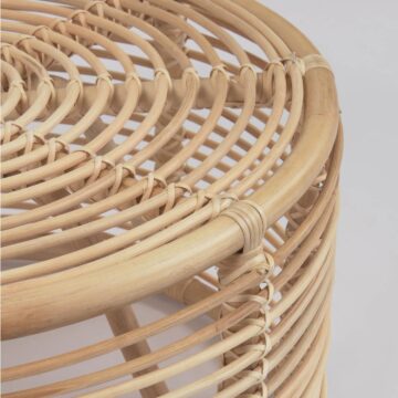 Klubska mizica Kohana je ročno izdelana iz naravnega ratana, kar pomeni, da je vsak kos unikaten. Njena lahkotna, a stabilna konstrukcija bo vašemu prostoru dodala toplino in naravno estetiko, hkrati pa poskrbela za trajnostno in okolju prijazno izbiro.